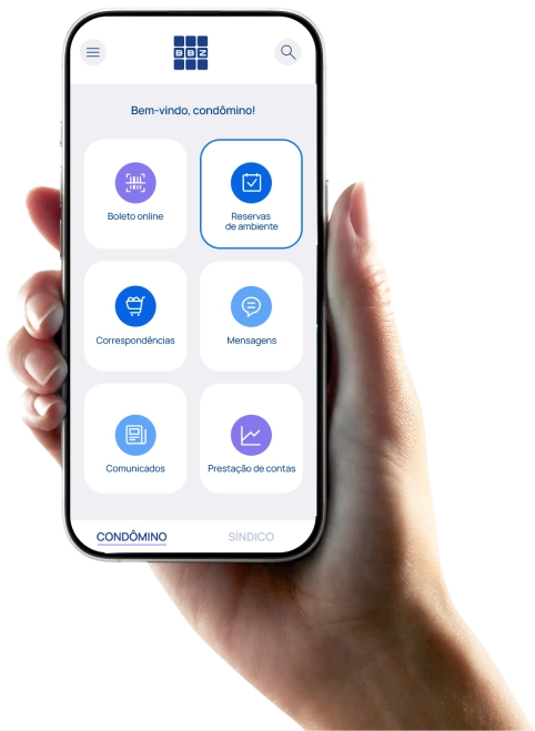 O app BBZ oferece acesso completo às informações do usuário e do condomínio em um só lugar. Através dele, condôminos podem consultar boletos, extratos, prestação de contas, documentos, contratos e atas. Também é possível agendar espaços de lazer, participar de enquetes e enviar mensagens, tudo de forma prática e centralizada.